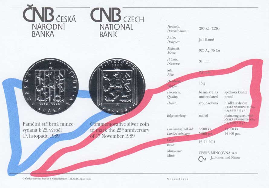 | 1721. | 200 Koruna 2014 - 25.výročí 17.listopadu 1989,