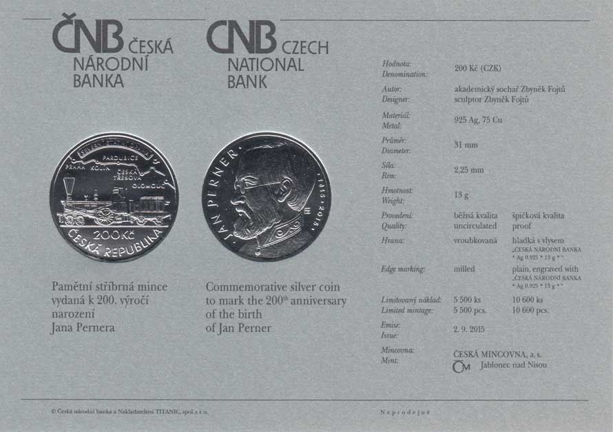 | 1722. | 200 Koruna 2015 - 200 let narození Jana Pernera