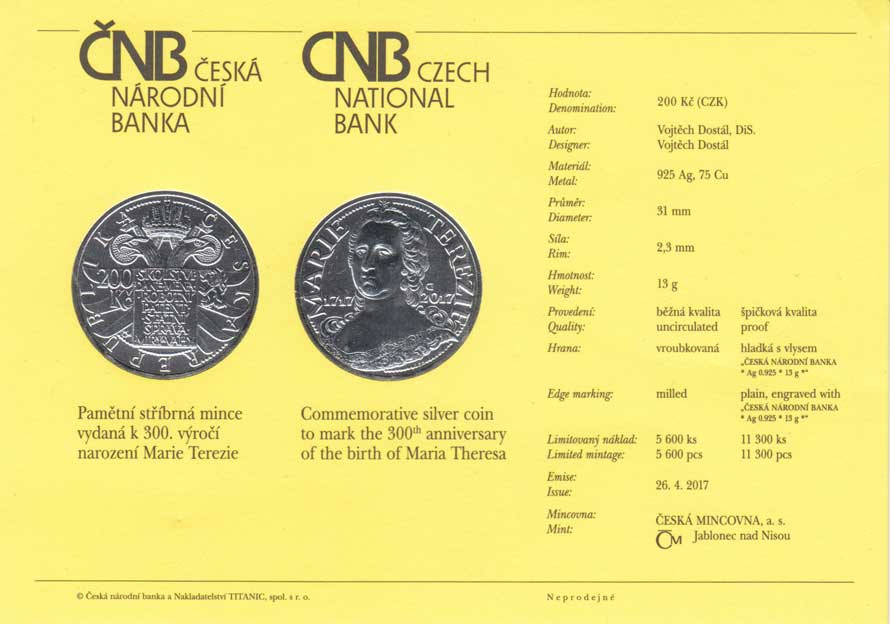 | 1723. | 200 Koruna 2017 - 300 let narození Marie Terezie