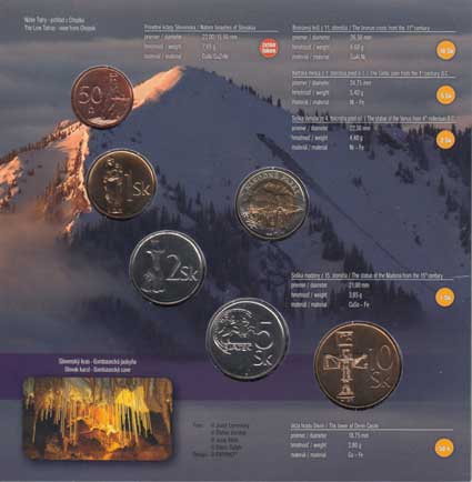 50 Hal. - 50 Kč (7ks), 50 Hal. - 10 Sk + jeton (6ks), obě s motivem krás přírody, společný přebal |