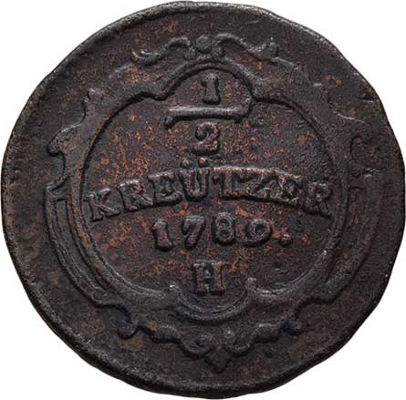 | 1780. | Cu 1/2 Krejcar 1789 H, Günzburg, P.53, 3.600g,