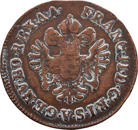 | 1795. | Cu 1/4 Krejcar 1800 A, Vídeň, 0.910g, vada materiálu,