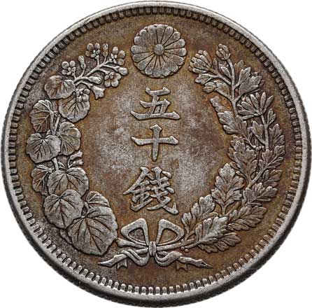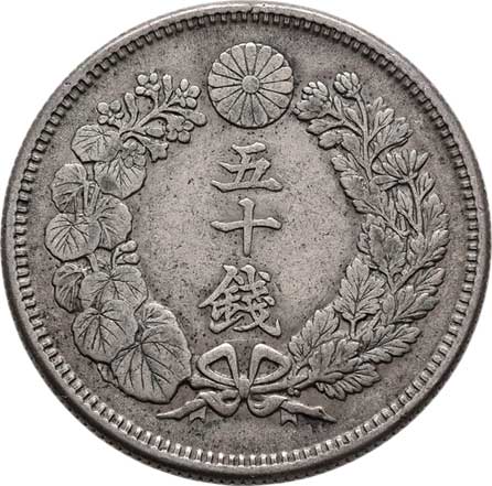 | 2573. | 50 Sen, rok 44 (= 1911), Y.31 (Ag800), 10.084g,
