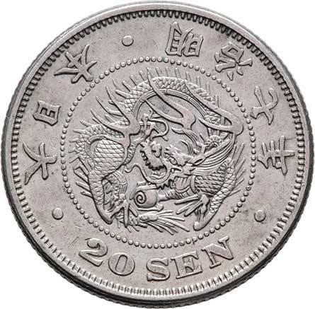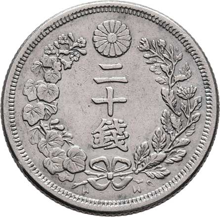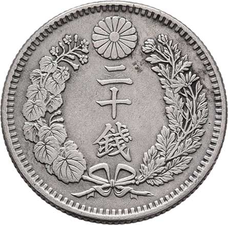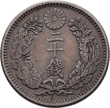 | 2574. | 20 Sen, rok 7 (= 1874), Y.24 (Ag800), 5.368g,