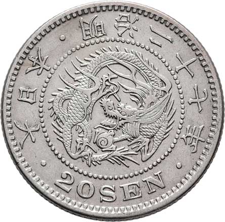 | 2575. | 20 Sen, rok 27 (= 1894), Y.24 (Ag800), 5.355g,