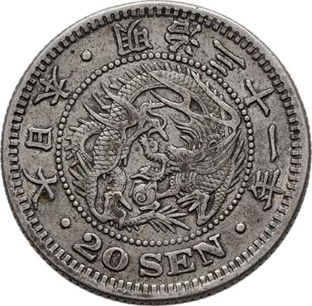 | 2576. | 20 Sen, rok 31 (= 1898), Y.24 (Ag800), 5.347g,