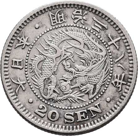 | 2577. | 20 Sen, rok 32 (= 1899), Y.24 (Ag800), 5.318g,