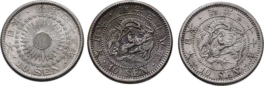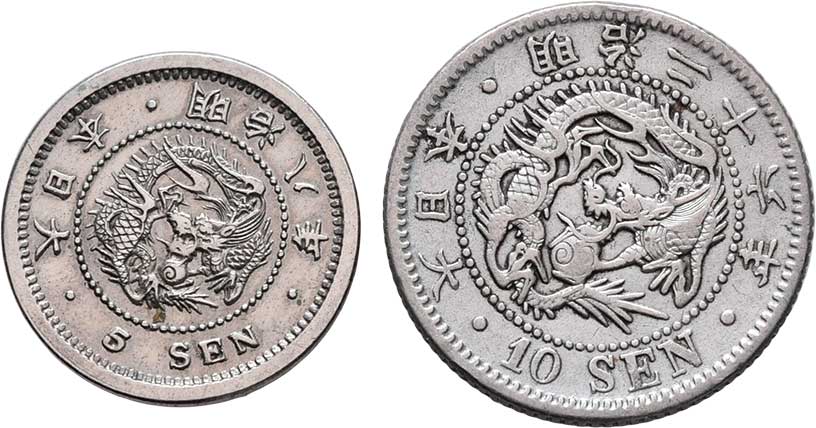 | 2581. | 10 Sen, rok 26 (= 1893), 5 Sen, rok 8 (= 1875),