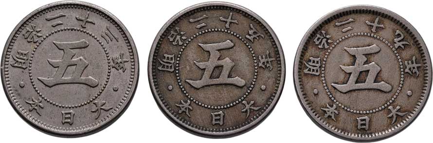 | 2587. | 5 Sen, rok 23 (= 1890), rok 25 (= 1892), rok 30