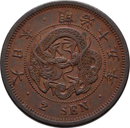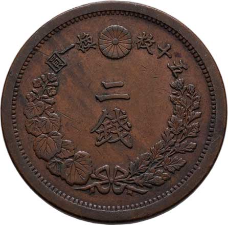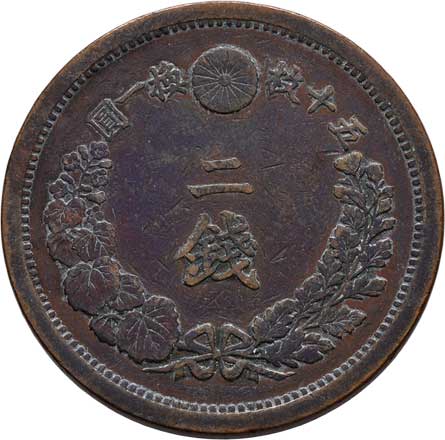 | 2590. | 2 Sen, rok 15 (= 1882), Y.18.2 (bronz), 14.538g,