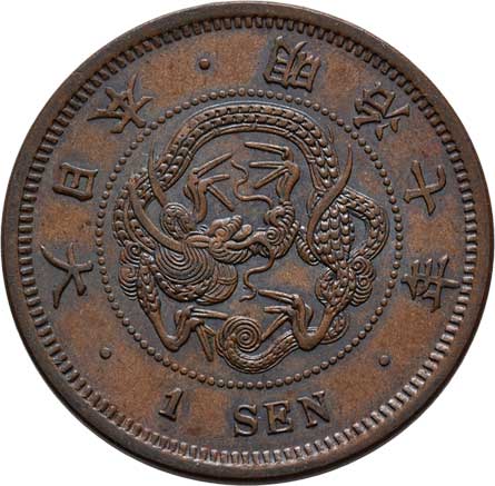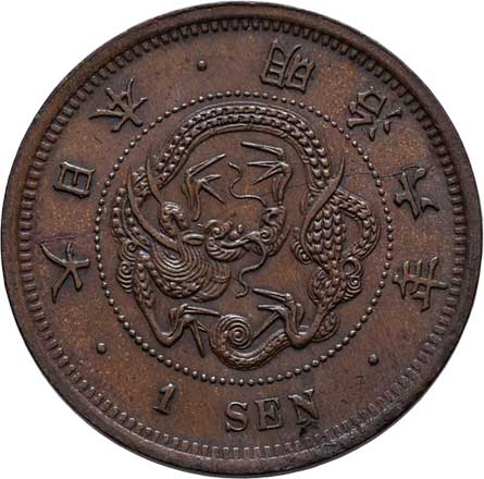 | 2593. | 1 Sen, rok 10 (= 1877), Y.17.1 (bronz), 7.009g,