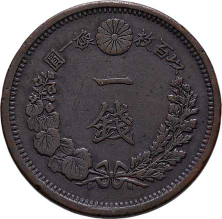 | 2592. | 1 Sen, rok 7 (= 1874), Y.17.1 (bronz), 7.348g,