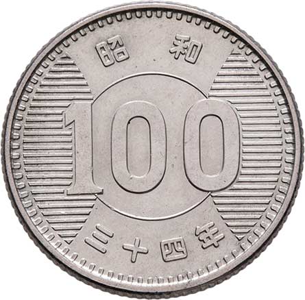 | 2599. | 100 Yen, rok 34 (= 1959), Y.78 (Ag600), 4.800g,