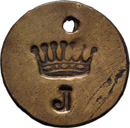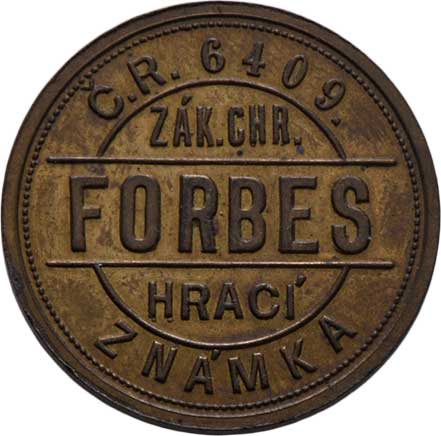 hrací známka, mosaz 25mm, 5.780g, pěkná patina, téměř |