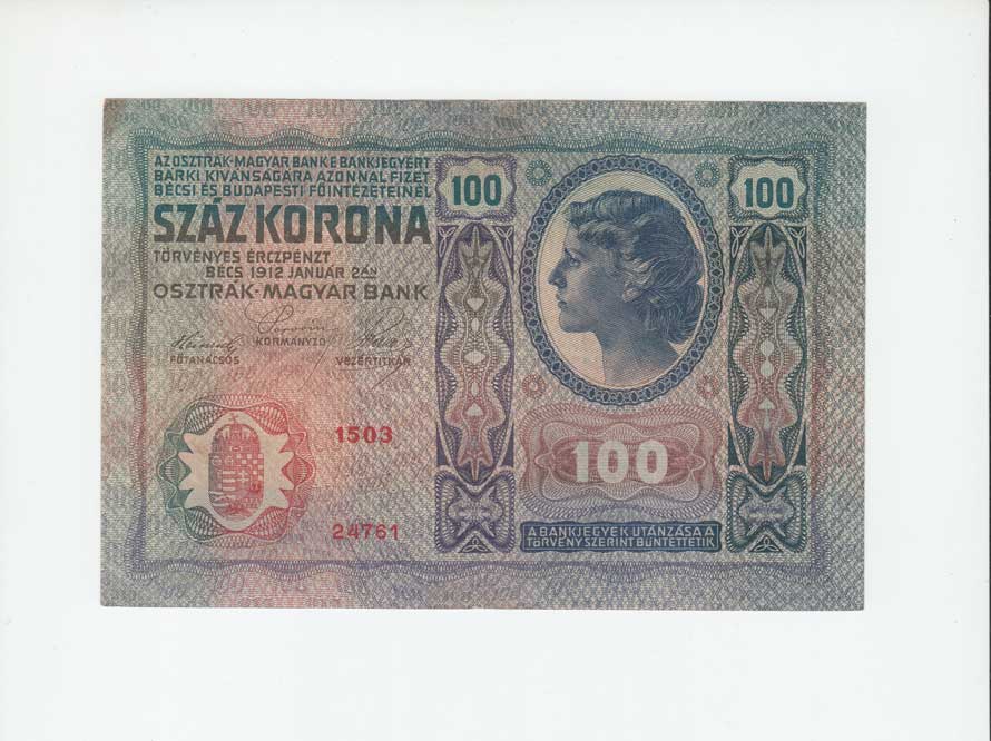 | 2992. | 100 Koruna 1912 - sér.1609 - neobvyklý kolek - zoubk.