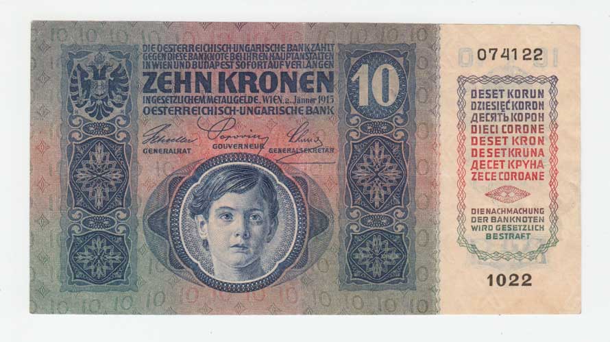 | 2987. | 10 Koruna 1915 - stříhaný kolek, série 1022, BHK.1a,