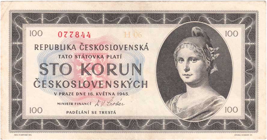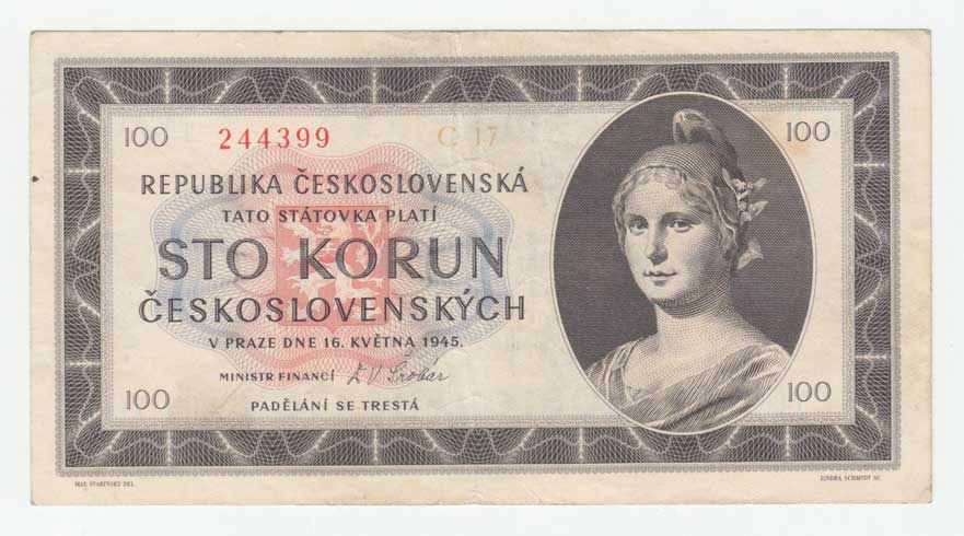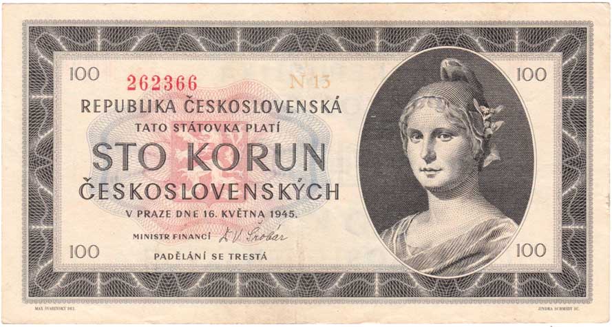 | 3206. | 100 Koruna 1945, série C17, BHK.77b1, He.82b,