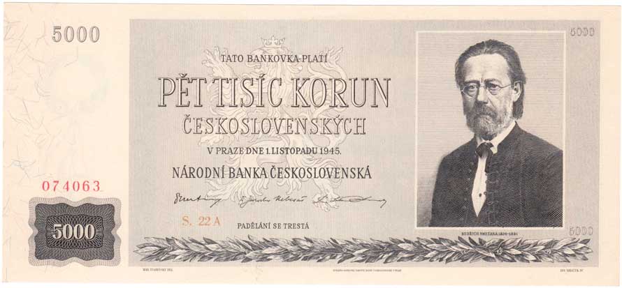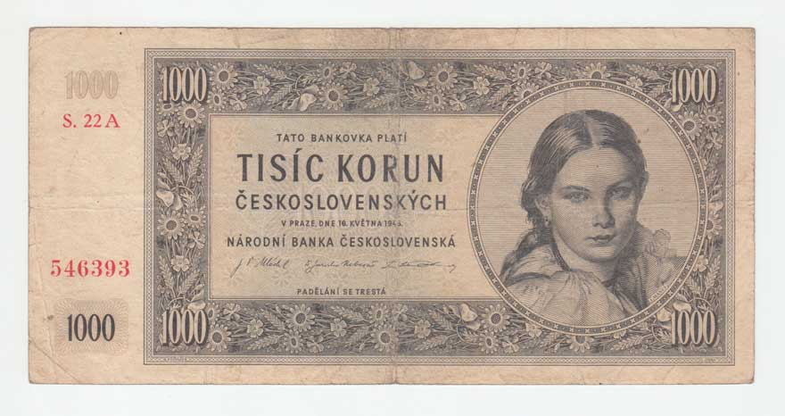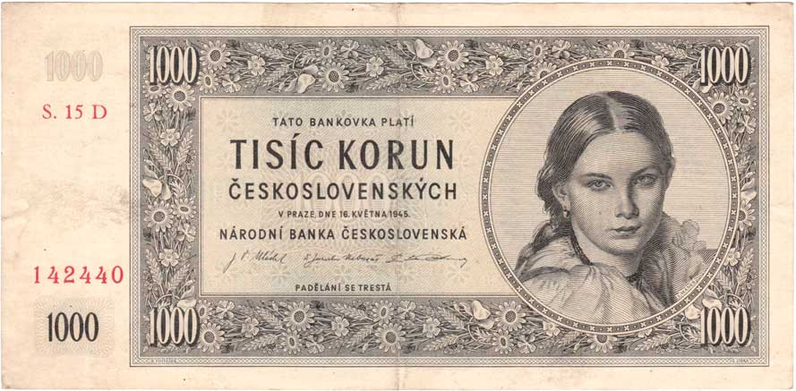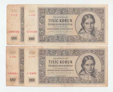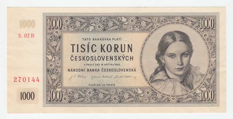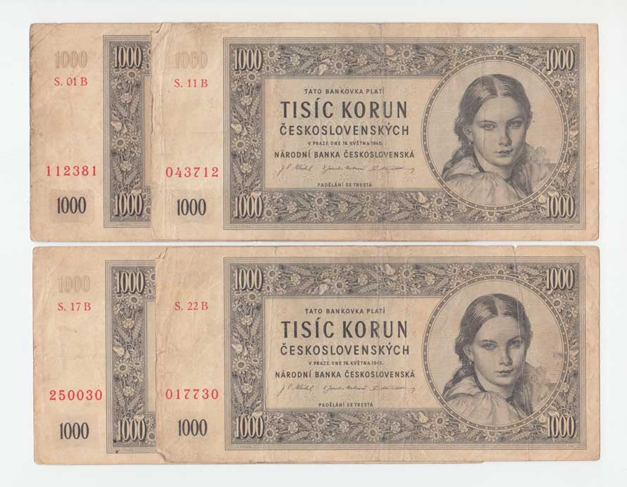 | 3213. | 1000 Koruna 1945, série 01B, 11B, 17B, 22B, BHK.78b,