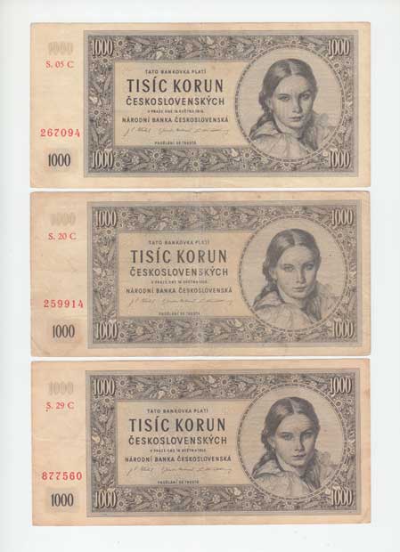| 3220. | 1000 Koruna 1945, série 05C, 20C, 29C, BHK.78c1,
