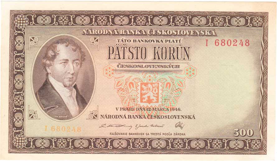 | 3232. | 500 Koruna 1946, série J, BHK.80a, He.87a.s1,