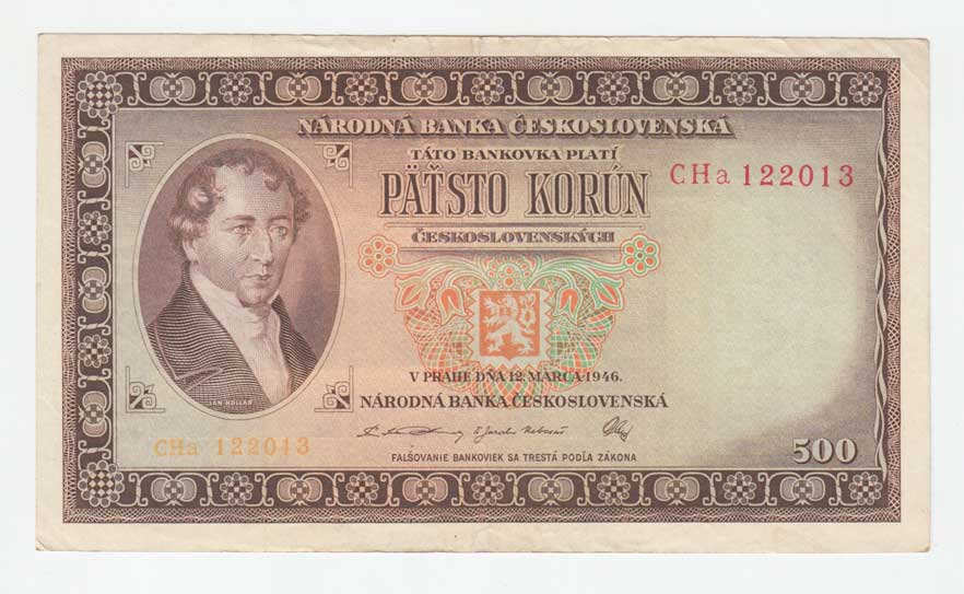 | 3233. | 500 Koruna 1946, série CHa, BHK.80b, He.87b,