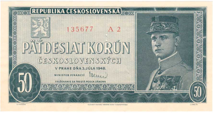 | 3236. | 50 Koruna 1948, série A48, BHK.81b, He.88a2,
