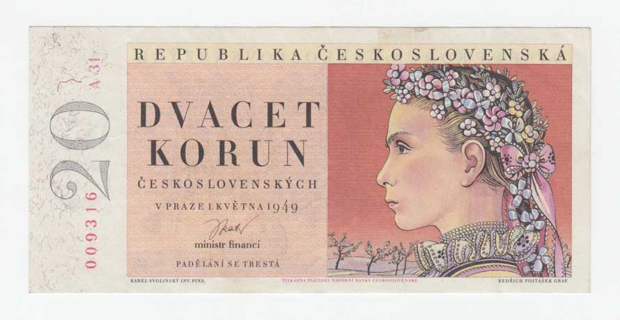 | 3244. | 20 Koruna 1949, série A13, BHK.83a, He.90a,