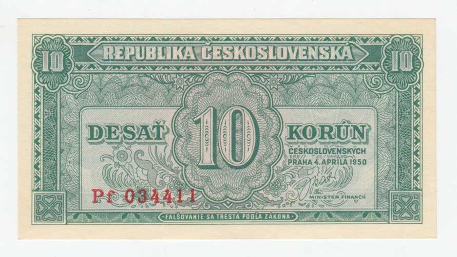 | 3255. | 10 Koruna 1950, série Pf, BHK.84b, He.92b, "neperf." | 0 | 100,- | 170,- |
