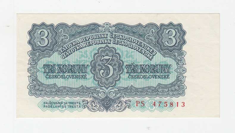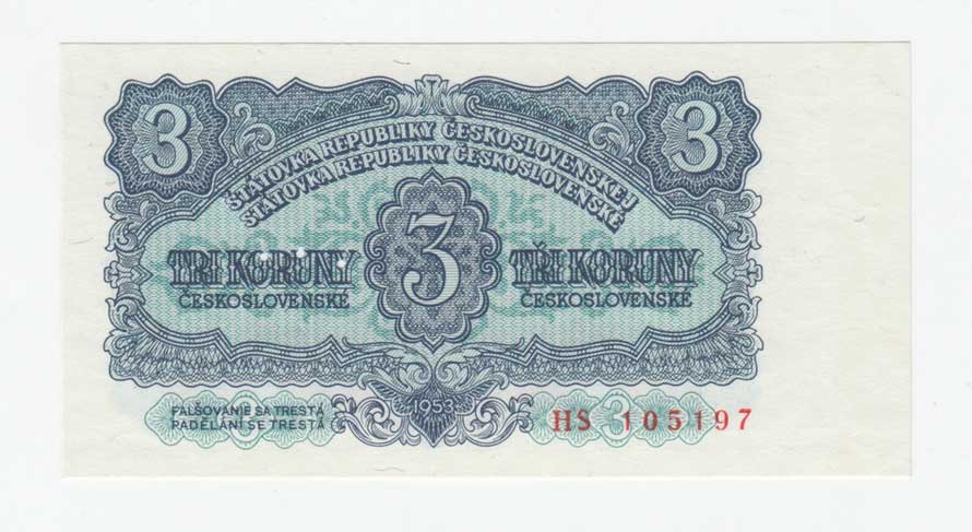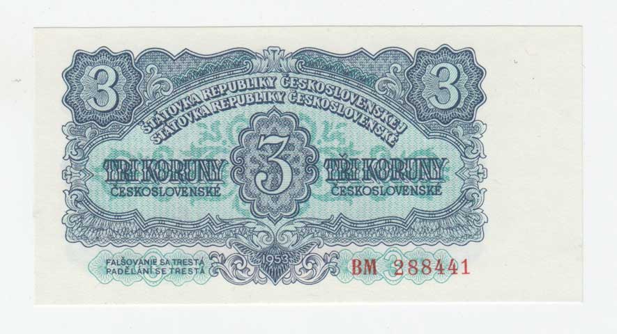 | 3265. | 3 Koruna 1953, série PS (Praha), BHK.87bB, He.99b,