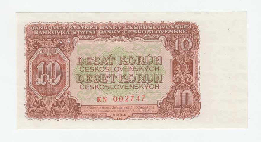 | 3270. | 10 Koruna 1953, sér. VN (Praha), BHK.89bB, He.101b,