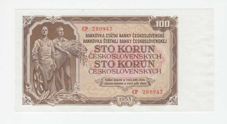 | 3277. | 100 Koruna 1953, sér. MS (Praha), BHK.92bB, He.104b,