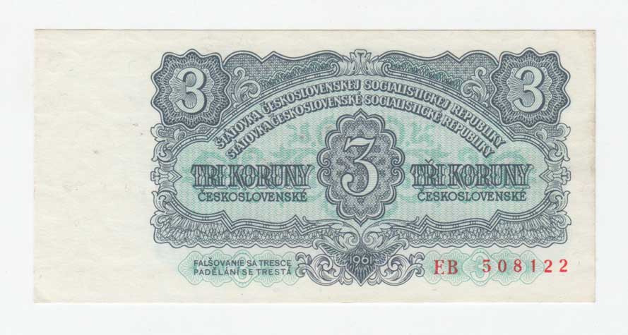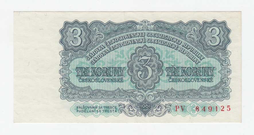 | 3289. | 3 Koruna 1961, série UV, BHK.95B, He.107a.s1,