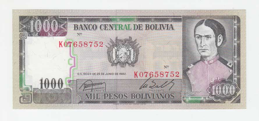 | 3408. | 1000 Pesos Bolivianos 1982, Pick.167a | N | 30,- | 30,- |
