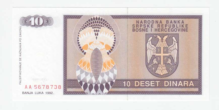 | 3411. | 10 Dinárů 1992, Pick.R1a | N | 100,- | --.- |