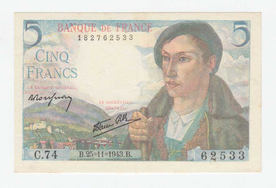 | 3430. | 5 Frank 25.11.1943, Pick.98a | 1 | 100,- | 100,- |