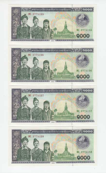 | 3461. | 1000 Kip 2003, Pick.32f, čtyři následující čísla | N | 30,- | 30,- |
