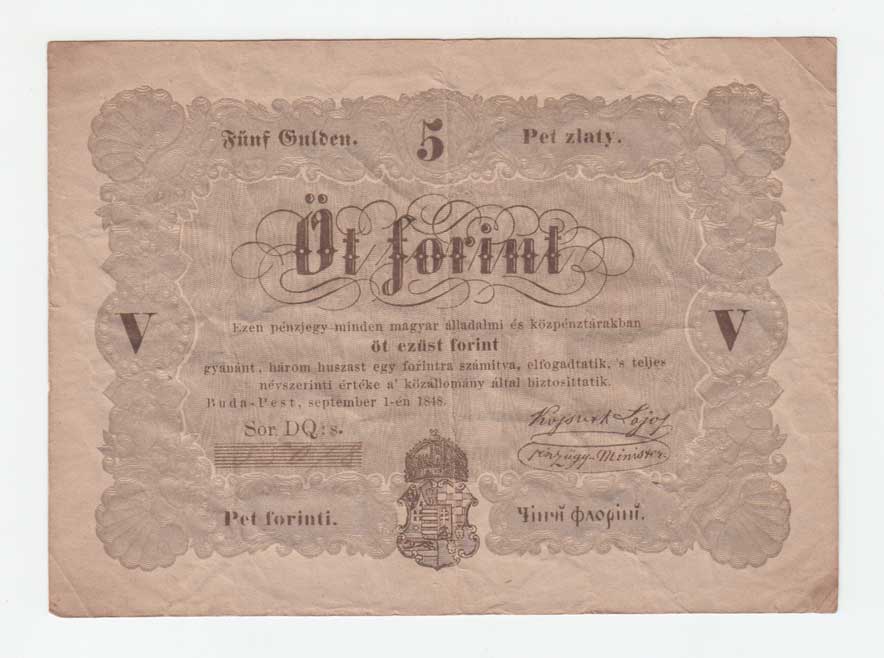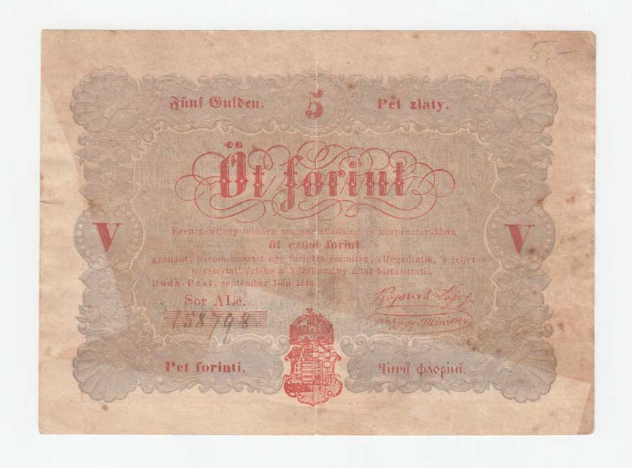 | 3463. | 5 Forint 1848, Ri.408b, Pick.S116b | 3 | 50,- | 130,- |