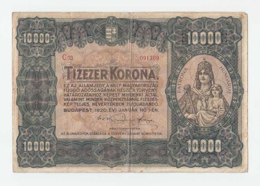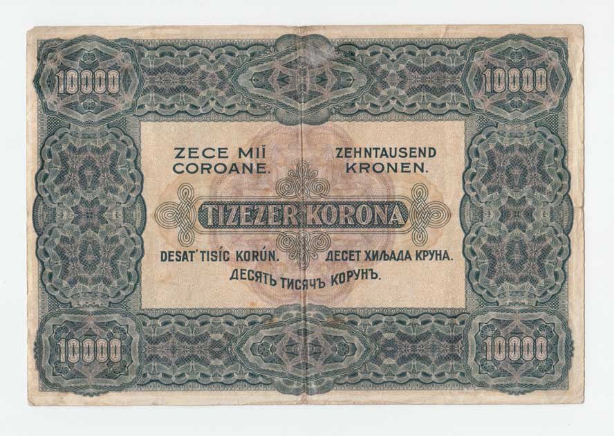 | 3471. | 10.000 Koruna 1920, Pick.68, v reversu vydřená plocha
