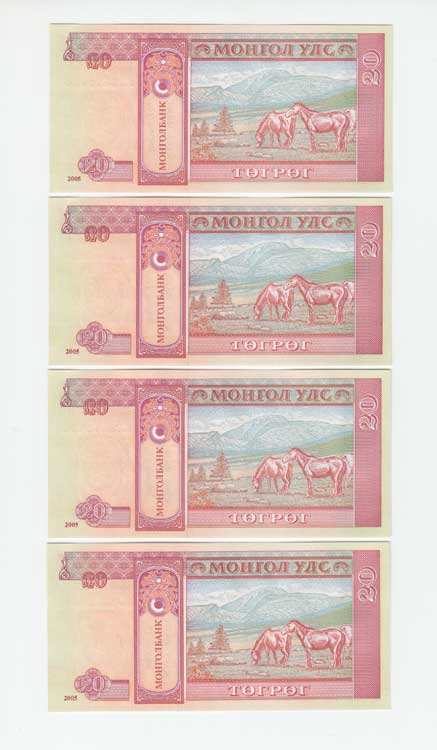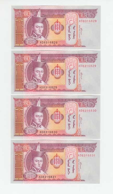 | 3499. | 20 Tugrik 2005, Pick.63, čtyři následující čísla | N | 30,- | 30,- |