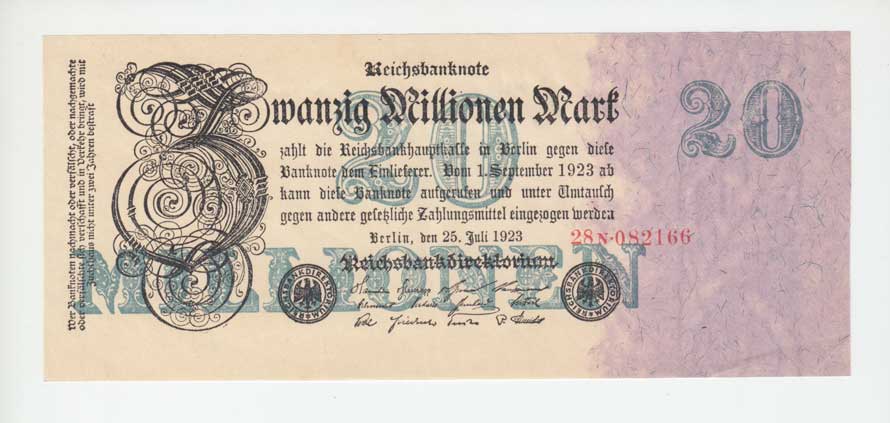 | 3523. | 20 Mio Marek 25.7.1923, Pick.97b, Ros.96b - sr.28N | 1 | 40,- | --.- |
