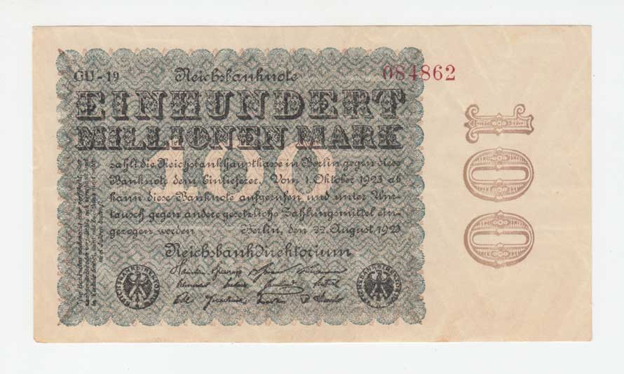 | 3533. | 100 Mio Marek 22.8.1923, Pick.107d, Ros.106l -