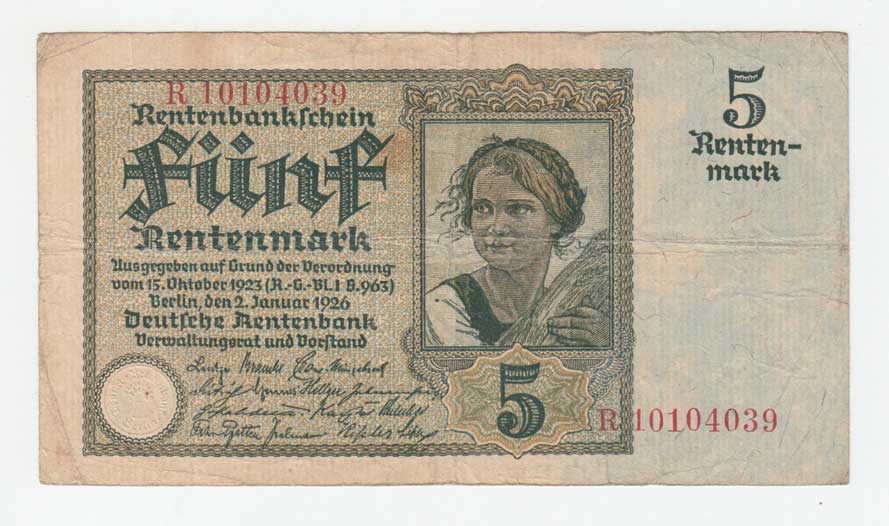 | 3545. | 5 Rentenmarka 1926, Pick.169, Ros.164b - srie R | 3- | 120,- | 120,- |