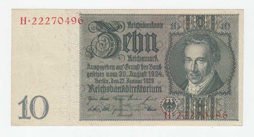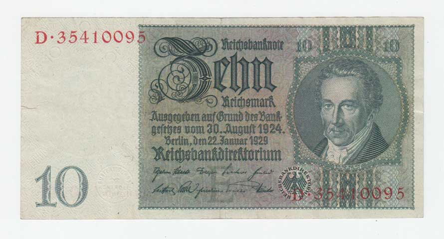 | 3552. | 10 Marka 1929, Pick.180a, Ros.173a - podt.G - sr.F,