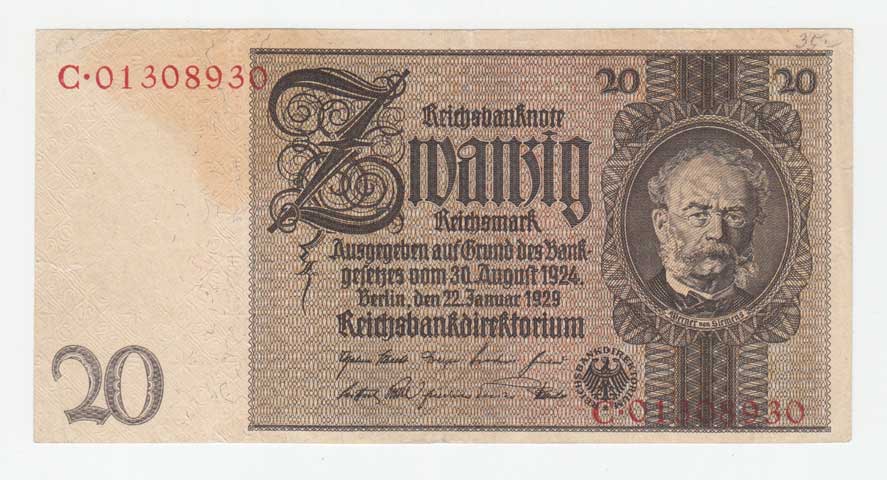 | 3559. | 20 Marka 1929, Pick.181, Ros.174a - podt.D - sr.O,