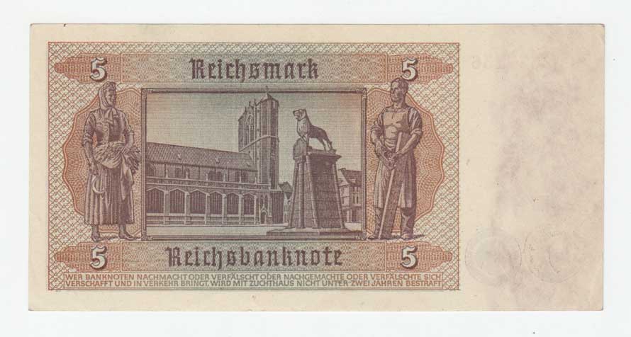 | 3571. | 5 Marka 1942, Pick.186, Ros.179b - podt.P - sr.B