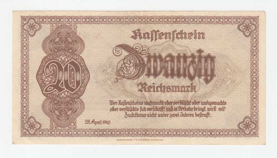 | 3577. | 20 Marka 1945, Pick.187, Ros.186 - sr.AF, Libereck