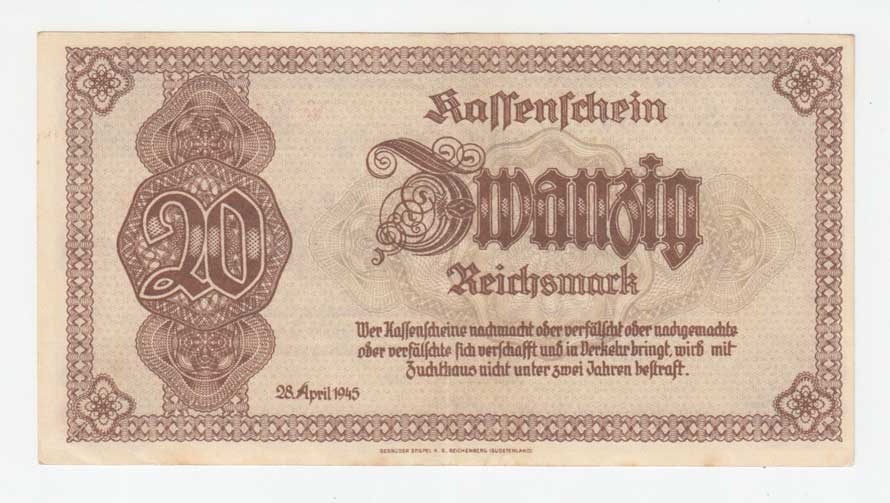 | 3575. | 20 Marka 1945, Pick.187, Ros.186 - sr.AB, Libereck