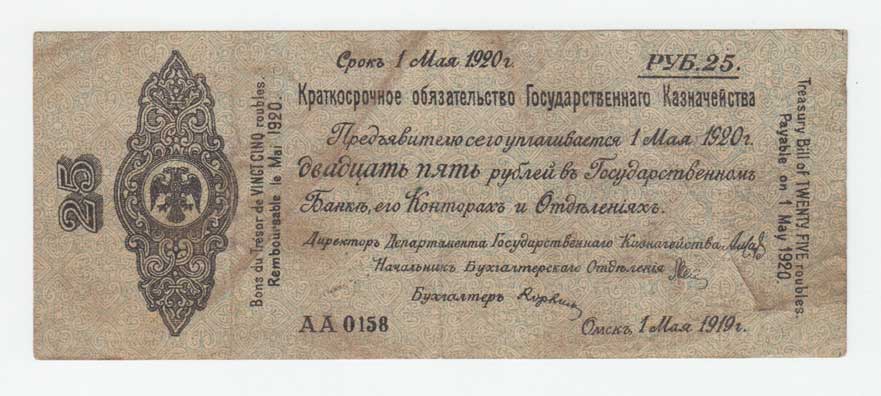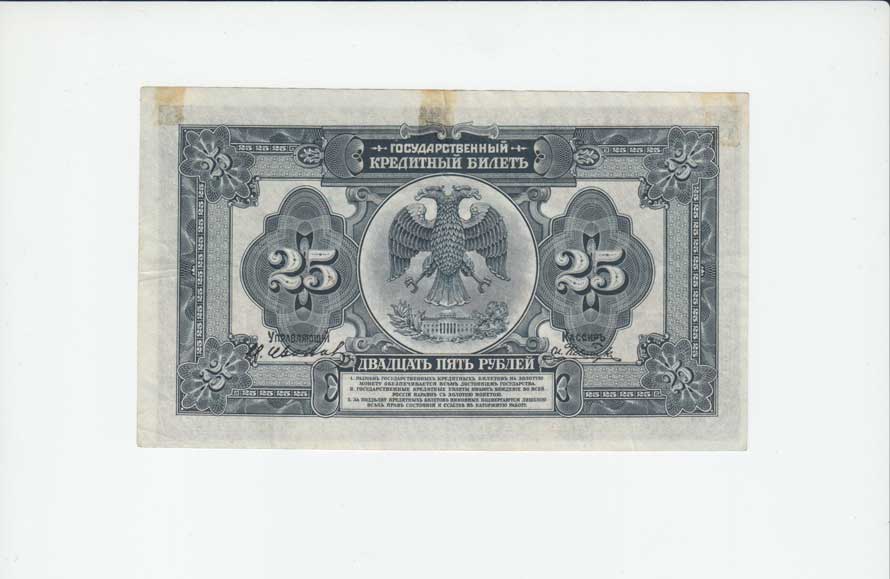 | 3712. | 25 Rubl 1.5.1919 - 5% vládní dluhopis, Pick.S855a | 3- | 25,- | --.- |