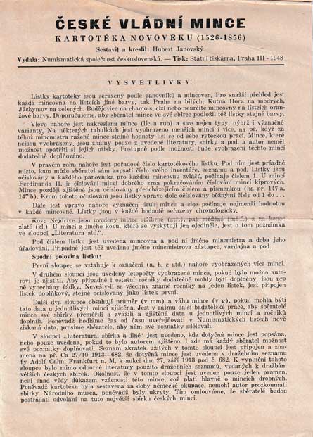 separát z numismatického sborníku č.VII, ČSAV, Praha 1962, 6 stran, 2 tabulky |