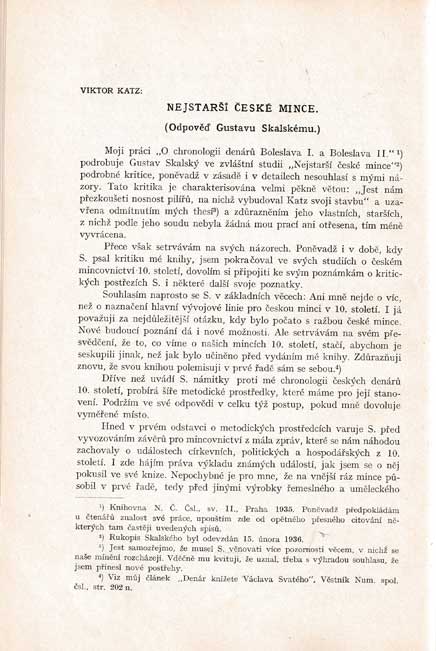 | 3793. | Skalský Gustav : Nejstarší české mince, Katz Viktor :
